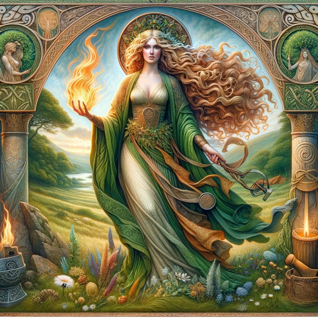 Brigid est une déesse majeure du panthéon celtique, vénérée principalement en Irlande, bien qu’elle ait également été honorée dans d’autres parties des îles britanniques. Elle est connue pour être une déesse polyvalente, associée à plusieurs aspects de la vie et de la nature.